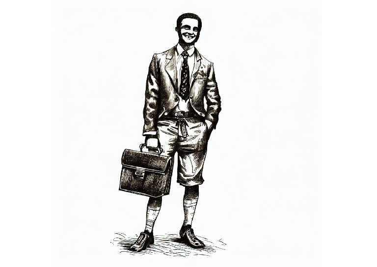 Uncle J (it was a strange name especially as I was older than him and in a "position of authority”), all smiles and flashing teeth would stroll out of the hostel, lolling a little from side to side, bowing to people he passed outside the hostel. In his hand he always carried a crocodile-green leather briefcase with gold-coloured locks on the top, it made him look very business-like and quite transformed his appearance. The only item ever to have the pleasure of using this stylish convenience was Jerome’s large leather-bound and dog-eared Bible, a book which saw much use.