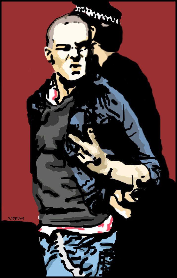 "It's doin’ ma head in, man" he used to complain in his thick northern accent, but he couldn't get off it because what else was there to do on the dole? He'd tried to get jobs but his appearance, with his short-cropped hair and spiders, put employers off. At one site he went to for a labouring job he presented himself to the foreman who looked him up and down and said :